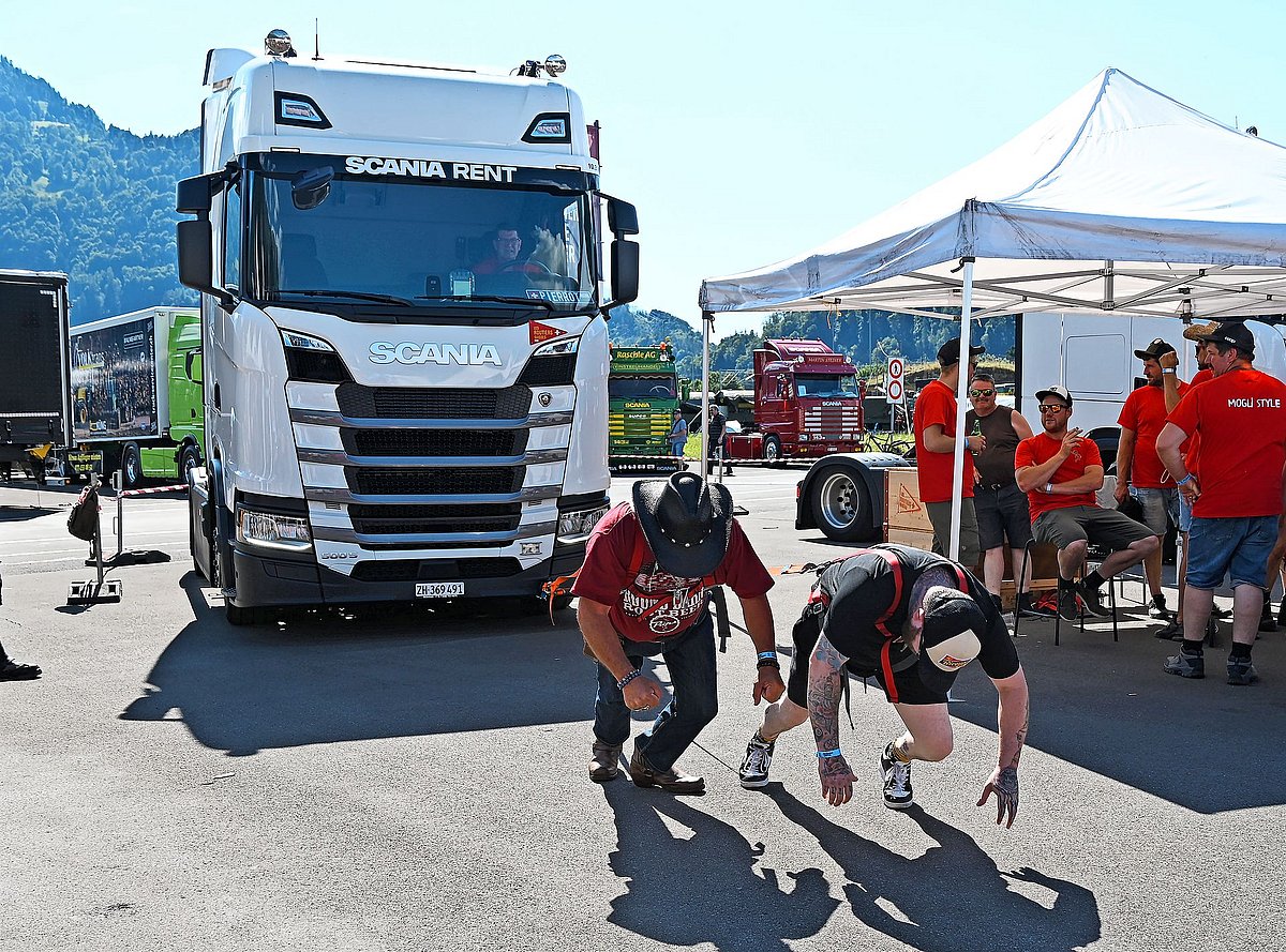 Die Jubiläumsausgabe des Internationalen Trucker & Country-Festivals Ende Juni auf dem Flugplatz Interlaken zog rund 49 000 Besucher an. Bereits zum 30. Mal fand das Festival statt, das nicht mehr vom Kalender wegzudenken ist. Trotz hoher Temperaturen fanden sich viele beim Stand von Les Routiers Suisses ein, um beim Truck-Pulling mitzumachen. Mit Muskelkraft einen Lastwagen ziehen kann man schliesslich nicht alle Tage. Neben den beliebten Namensschildern waren auch andere Dinge am Stand des Berufsverbands wichtig: die Gespräche, in denen sich Chauffeusen und Chauffeure untereinander und mit dem Verband ausgetauscht haben.