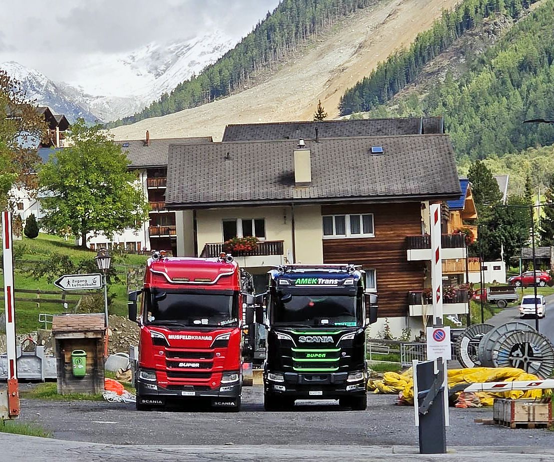 An Pfingsten sei er ins Lötschental gefahren und habe sich die Situation angeschaut. Dabei habe er den Krisenstab kennengelernt. «Es sind wirklich tolle Leute, die in dieser schwierigen Situation Grossartiges leisten. Die Zusammenarbeit mit ihnen ist sehr gut.» Darauf habe er, wie schon 2021 fürs Ahrtal, Kollegen und Firmen angefragt, ob sie ihn unterstützen – mit einem Einsatz als Chauffeur oder mit zur Verfügung gestellten Fahrzeugen und Anhängern. Nach einem ersten Transport mit einem Lastwagen und einigen mit seinem Auto und Anhänger, folgte der Hilfstransport mit den zwei Lkw. Die Fracht stammte unter anderem aus Bachs (ZH). Landwirt Roland Meier, der selber kein Vieh mehr hält, spendete viele Ballen Heu. «Ich hätte es auch verkaufen können, habe dann aber vom Hilfstransport gehört und fand es eine gute Sache, den Landwirten aus Blatten zu helfen», erklärt er.