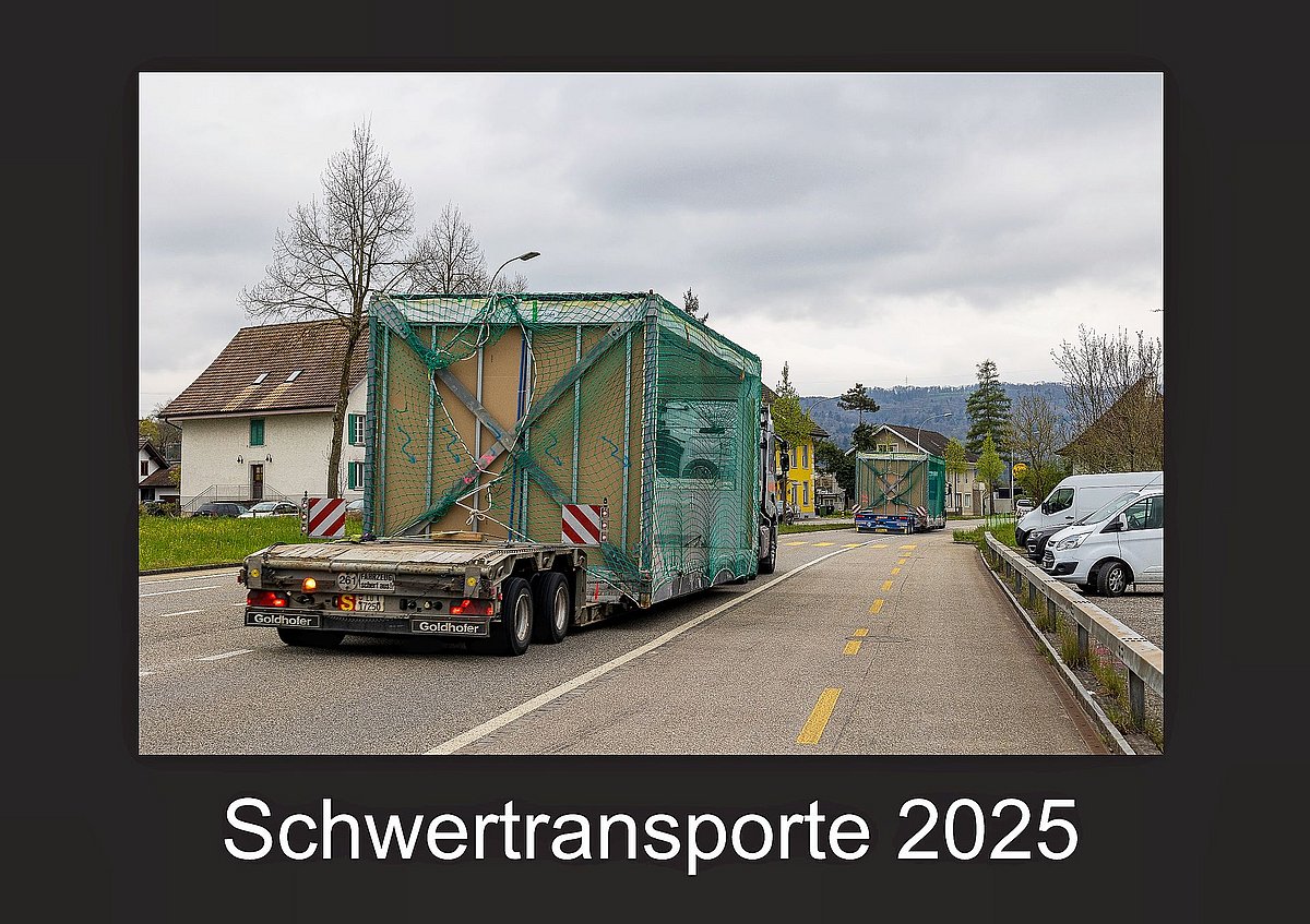 Erich Urweider, Autor von vielen Artikeln über Schwertransporte und Veteranenfahrzeuge im Swiss Camion, hat auch für das Jahr 2025 zwei Kalender produziert. Einer zeigt Veteranenlastwagen, der andere Impressionen von Schwertransporten. Die Kalender sind auf hochwertigem 250 g/m2 Papier gedruckt und einzeln verpackt. Sie umfassen 14 Seiten, das heisst Titelbild, 12 Monatsseiten mit Kalendarium und eine Übersichtsseite mit einigen Angaben zum Fahrzeug respektive der Fahrzeugkombination. Der Preis pro Kalender exklusiv Versand beträgt 33 Franken. Die Kalender können unter erich@urweider.com, auf der Website www.urweider.com oder unter Tel. +41 (0) 62 897 17 19 bestellt werden.