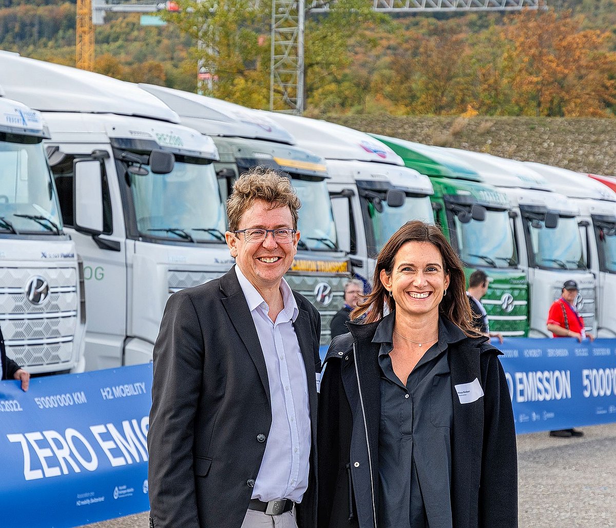 Die Strategie des Bundesrats ist für die Wasserstoffmobilität sicher positiv zu werten. Dennoch ist damit zu rechnen, dass die meisten Transportunternehmen in den nächsten Jahren vom Kauf von Wasserstofffahrzeugen absehen, da die Planungssicherheit nicht gegeben ist. Zudem endet 2030 die LSVA-Befreiung dieser Fahrzeuge. Auch bei der Camion Transport AG sind aktuell keine weiteren Wasserstofflastwagen geplant. «Die Anschaffung und der Betrieb sind zu teuer. Zudem sind keine neuen Modelle von Hyundai verfügbar», erklärt Jäger. Der Unternehmer will noch zuwarten: «Wenn ab ca. 2028 Hersteller wie Daimler oder Volvo mit Wasserstofflastwagen auf den Markt kommen, sehe ich gute Chancen, die Lastenzüge und Sattelschlepper mit rund 80 000 km Jahresleistung auf diese Technik auszurichten.» Im Wasserstoff sieht er nach wie vor Potenzial: «Gerade weil mit den Photovoltaik-Anlagen an verschiedenen Tagen viel grüner Überschussstrom produziert wird, ist Wasserstoff eine echte Chance für die Dekarbonisierung im Strassengüterverkehr.» Auch Martin Osterwalder, Präsident des Fördervereins, bleibt optimistisch: «Wollen wir die Dekarbonisierung des Energiesystems erreichen, dann ist Wasserstoff essenziell.»