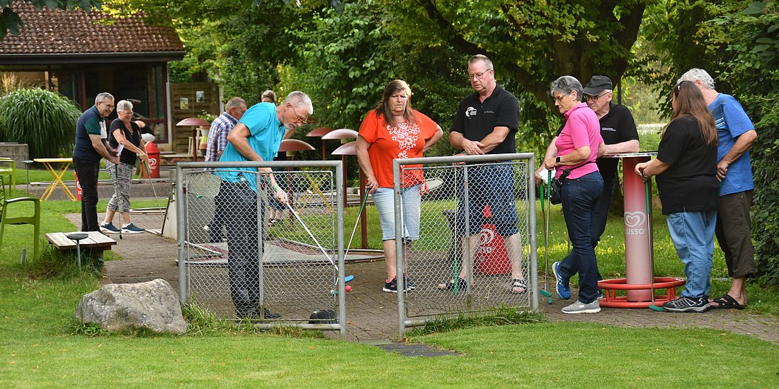 Das Wetter machte seht gut mit, wir hatten grossen Spass an den Hindernissen und hatten es sehr lustig. Gewonnen hat mit 48 Punkte Paul Widmer gefolgt von Nicole Rickli mit 50 Punkte und als dritter mit 51 Punkte Jürgen Stich. Als Belohnung gönnten sich die meisten noch ein Glace. Zuwachs von 2 Mitgliedern haben wir auch noch bekommen, schön schauten diese nach dem Feierabend bei uns noch vorbei. Kurz bevor die Minigolfanlage um 23 Uhr schloss, machten wir uns auf den Heimweg. (Judith Omlin)