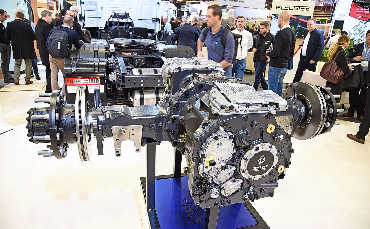 Der französische Lkw-Hersteller hatte im November auf der Solutrans in Lyon praktisch ein Heimspiel und hat dieses für die Vorstellung diverser Neuigkeiten genutzt. Die wohl prägnanteste News war dabei die neue Elektro-Achse bei der grossen T-Reihe, die nun erstmals in einem Fahrzeug zu sehen war. Auf der transport.CH zwei Wochen davor stand bei Renault hiervon lediglich ein 3D-Modell. Volvo Trucks, die Schwestermarke aus dem Mutterkonzern Volvo Group, zeigte immerhin die Achse selber.