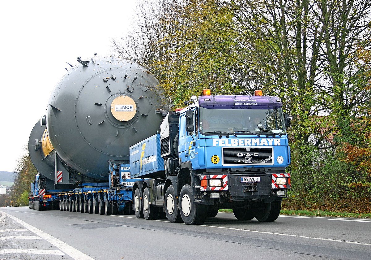 Im Laufe seiner automobilen Karriere kam der ÖAF bei einigen besonders herausfordernden Aufträgen zum Einsatz. Die Felbermayr-Experten erinnern sich unter anderem an Spezialeinsätze beim slowenischen Kernkraftwerk Krško, schwierige Windrad-Transporte im Mühlviertel oder Trafo-Transporte zur Kraftwerksgruppe Reißeck-Kreuzeck in Kärnten. «Dabei kamen ein SPMT-Selbstfahrer, einer unser Mercedes Titan 4160 8x6 und vorne der Sechser gemeinsam zum Einsatz, nach dem Überfahren des Scheitels der Strecke wurden beide Zugmaschinen hinter der Ladung angehängt, um die bestmögliche Bremswirkung sicherzustellen», erläutert Jürgen Prokosch. Bei seinen Einsätzen beförderte der Allrad-ÖAF im Zug-Schub-Verbund teilweise Gesamtgewichte von bis zu 700 Tonnen. Die technische Freigabe für den «Büffel» als Solofahrzeug seitens des Herstellers liegt bei konkurrenzlosen 350 Tonnen.