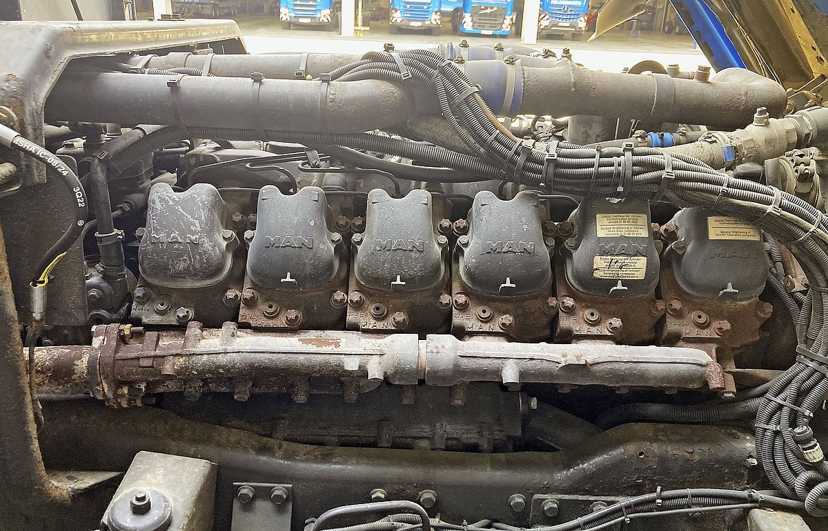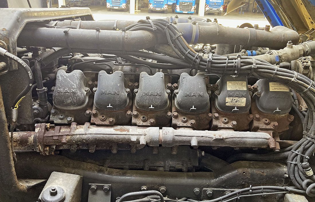 Heute kann es der spektakuläre V12-Lkw mit dem D2842-Motor ruhiger angehen. Bestens gehegt und gepflegt geniesst er nach 702 412 Einsatzkilometern seinen automobilen Ruhestand und wird gelegentlich bei innerbetrieblichen Überstellungen auf dem weitläufigen Felbermayr-Firmengelände in Wels gestartet.