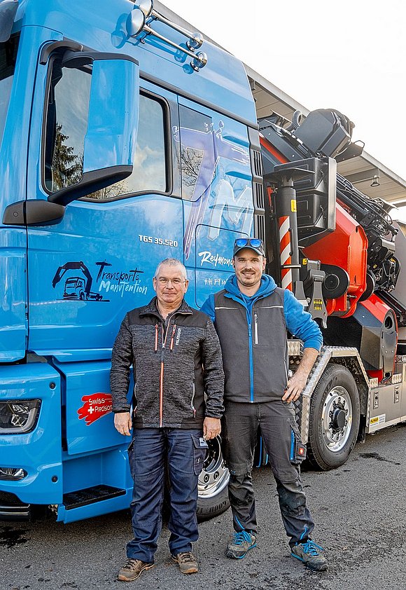 Die TM Reymond SA transportiert so ziemlich alles, das eine hohe Kompetenz und eine gute Ausrüstung im Kranbereich erfordert. Ob der Transport von Baumaschinen oder Einsätze, die vor Ort mehrere Tage dauern – die Fahrzeuge mit Kranen von Fassi oder Palfinger in verschiedensten Grössen sind sehr flexibel einsetzbar. Gegründet wurde das Unternehmen übrigens 1996. Nachdem Jean-Luc Reymond die Mechanikerlehre bei Saurer in Morges absolviert hatte und unter anderem bei Friderici in verschiedensten Positionen, vom Mechaniker über Disponent bis zum Chauffeur, so ziemlich alles gemacht hatte, kaufte er seinem Schwiegervater einen Lastwagen ab. Heute hat sein eigenes Unternehmen vier Angestellte, und seine Frau arbeite im Büro mit. Zudem ist auch schon der künftige Chef im Unternehmen. «Mein Sohn Dylan ist daran, meine Nachfolge zu übernehmen. Wir machen das fliessend», erzählt Jean-Luc Reymond. An der Markentreue bezüglich des Fuhrparks ist es gut möglich, dass sich nicht so schnell etwas ändert. Auf die Frage, ob denn auch unter ihm nur MAN im Einsatz stehen werden, sagt Dylan Reymond lachend: «Vermutlich schon, ja.»