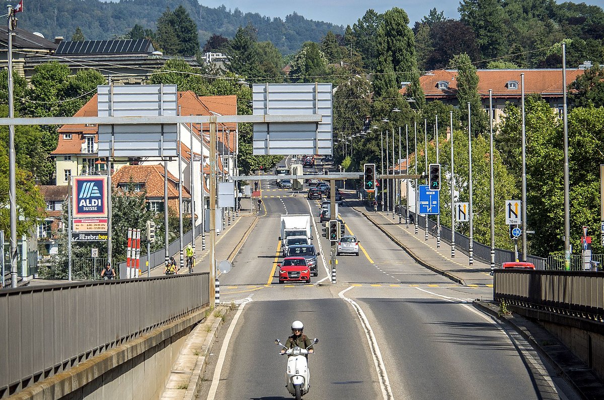Fahrzeuge mit Ausnahmebewilligungen dürfen künftig die Busspur auf der Monbijoubrücke in beide Fahrtrichtungen nutzen. Dadurch soll der Verkehrsfluss für diese Fahrzeuge verbessert werden.