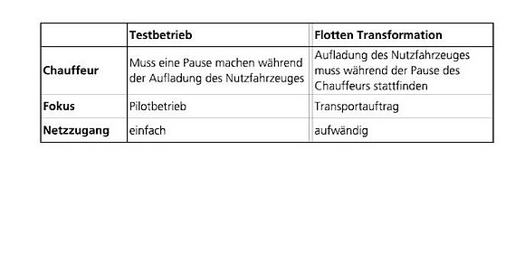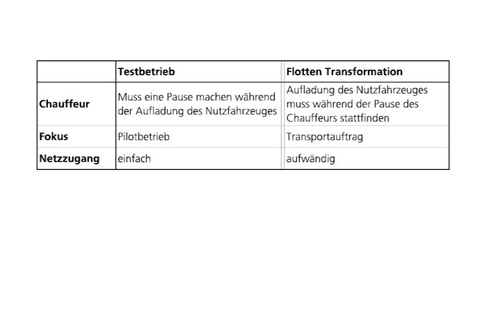 Viele Unternehmen, auch KMU, haben den Testbetrieb mit E-Nutzfahrzeugen bereits erfolgreich aufgenommen. Laut Christian Bach gilt es aber zwischen einem Testbetrieb und der umfassenden Transformation ganzer Flotten zu unterscheiden. Er nennt Beispiele (siehe Tabelle):