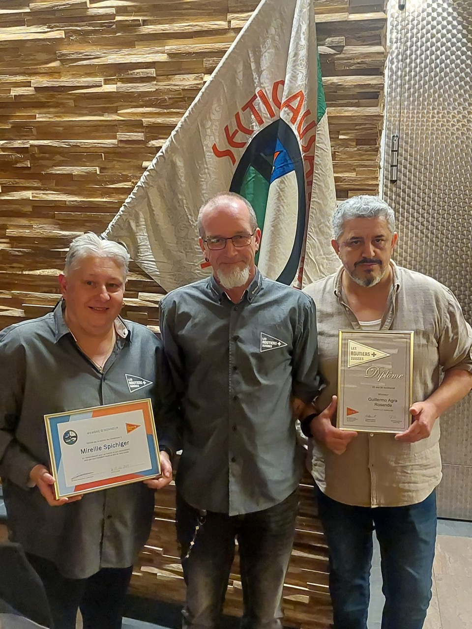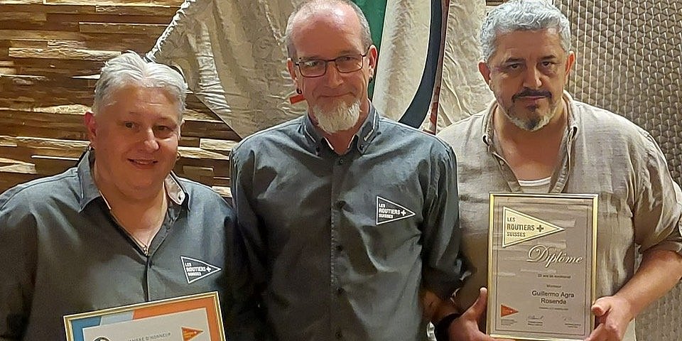Mit Ungeduld und grosser Freude erwartete unser vereinter Vorstand die lieben Mitglieder, Gäste und Ehrenmitglieder zu unserer 63. Versammlung der Sektion Arc Lémanique.Wir konnten 23 Sektionsmitglieder, 7 Gäste: Eric Perrenoud von der Sektion Broye, Roland Schnarrenberger und Patrick Perrenoud von der Sektion Freiburg, Félix Stockar von der Sektion Schaffhausen, Gilles Rossel, Ruth und David Piras sowie 4 Ehrenmitglieder: Guillermo Agra, Pierre Cornuz, Pierre André Francelet und Alfred Schneeberger begrüssen. Der Vorstand überreichte das Diplom für 50 Jahre Treue an Claude Bettex sowie ein Diplom für 25 Jahre Treue zu den Routiers Suisses sowie zu unserer Sektion, deren Präsident er 4 Jahre lang war, an Herrn Guillermo Agra. Danke Guillermo, dass Du uns so treu bist, es war mir eine Freude, Dir dieses schöne Geschenk zu überreichen. Der Vorstand überreichte auch Mireille Spichiger ein Diplom und ein Geschenk für ihren Einsatz im Vorstand als Kassierin während 14 Jahren. Den Abend abgerundet haben der Aperitif und ein köstliches Fondue. Ein herzliches Dankeschön an unseren Gastgeber vom Weinkeller La Rose d'Or! Der Vorstand und sein Präsident, Jérôme Recordon, bedanken sich herzlich bei allen anwesenden Teilnehmern unserer Versammlung. Carole Rochat