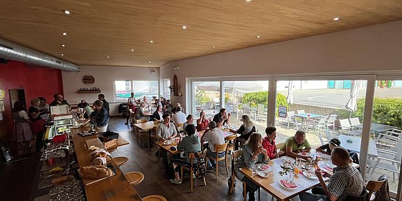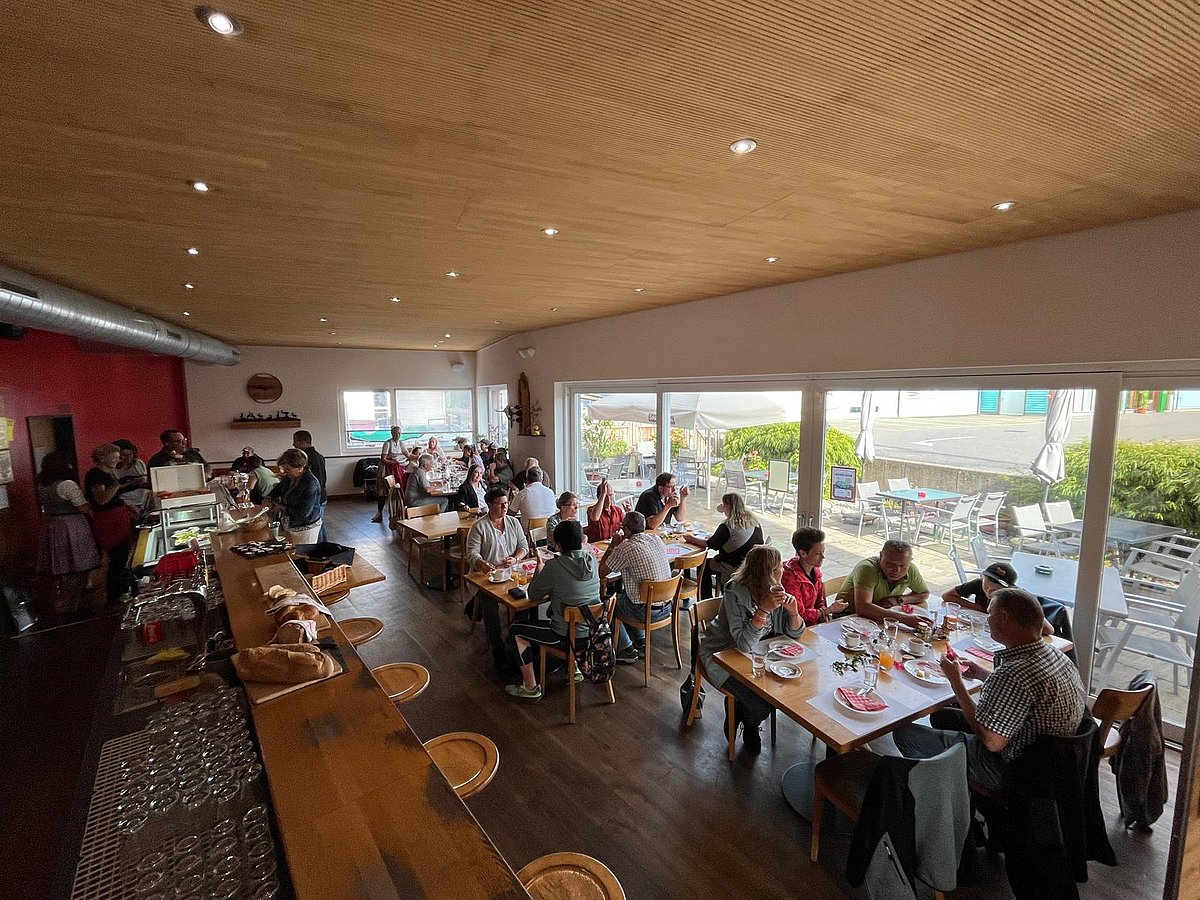 Am Sonntag 7. September fand der alljährliche Routiers Brunch im Tru Bistro Neuhaus statt. Nachdem Reto Flückiger die Mitglieder und deren Angehörige begrüsst hatte, durften wir uns am grossen Brunch Buffet bedienen: diverse Confis, Rösti mit Speck, Spiegelei, einer Fleisch- und Käseplatte, verschiedene Brotsorten wie auch Fruchtsalat und Birchermüesli standen bereit. Es fehlte an nichts. Auch für musikalische Unterhaltung wurde auch gesorgt: Nicole, Marco und Lena packten ihre Instrumente aus und spielten uns ein paar Lieder vor. Bei bester Unterhaltung, gemütlichen und teils sehr lustigen Gesprächen liessen wir den Tag ausklingen.