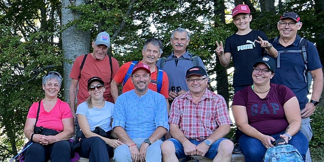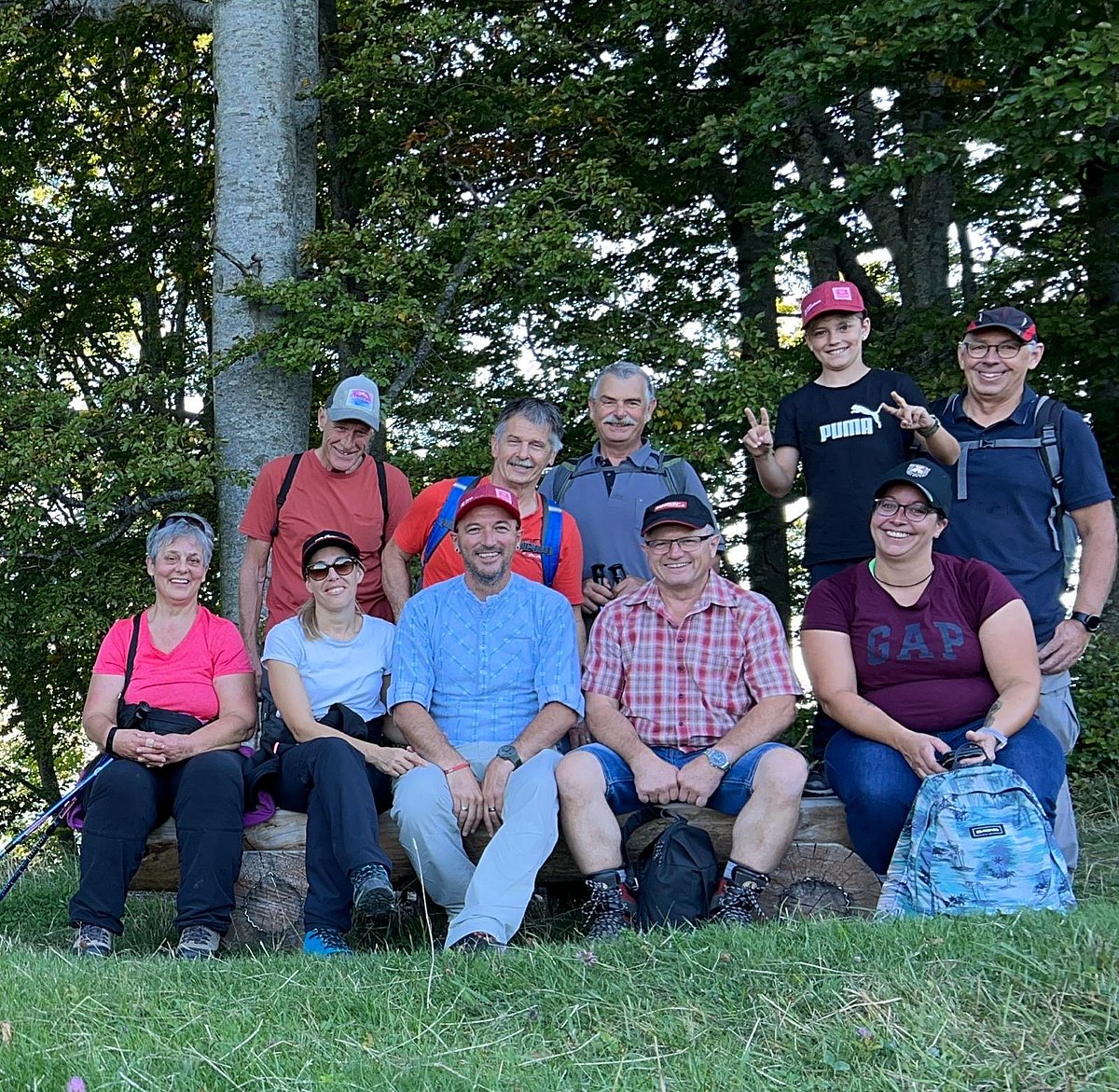 Morgens früh um 6:45 Uhr trafen sich 10 Mitglieder im Soorpark Bütschwil, um von da aus zum Bahnhof zu gehen. Nach kurzer Wartezeit stiegen wir in das Postauto mit dem Ziel Hulftegg. Auf der Passhöhe Hulftegg angekommen, genossen wir schon den ersten Blick in Richtung Ostschweiz. Nach einem kurzen Halt, gingen wir weiter über die Hulftegger-Älpli und über den Zürcher Oberland Höhenweg zum Restaurant Tierhag. Nach einer Rast im Restaurant, brachen wir wieder auf und wanderten um das Schnebelhorn herum, so dass wir unser Mittagsziel Meiers-Alp um die Mittagszeit erreichten. Bei prächtigem Wetter und einer sehr schönen Wanderroute war das Ziel erreicht. Der Meiers-Alp Pächter hat uns freundlich begrüsst und uns über das Mittagsmenü informiert. Nach dem Essen machten sich die zehn Gipfelstürmer auf und wanderten den Talweg weiter hinab in Richtung Libingen. In Libingen im Restaurant Rössli wurde nach einem steilen Abstieg und einer neuen Freundschaft von Tipi und einem Esel, ein kaltes Getränk zur Stärkung für den weiteren Heimweg getrunken. Was für ein Tag und welche Organisation! Claudia vielen Dank für den wunderschönen Wandertag, der uns sehr lange in Erinnerung bleiben wird und natürlich auch ein Dankeschön an unsere Mitglieder, die auch einen grossen Beitrag geleistet haben.
