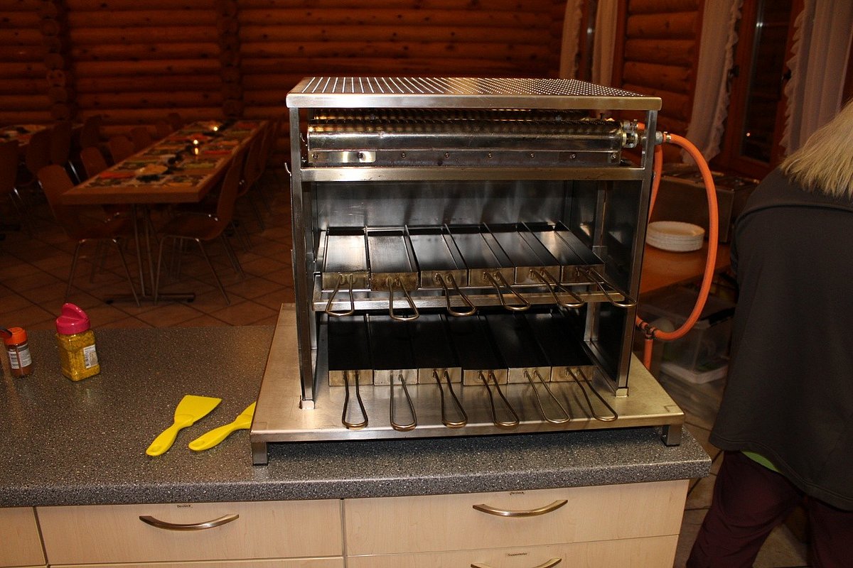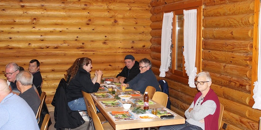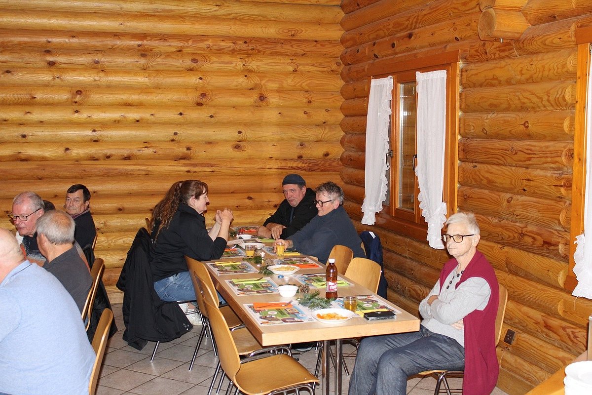 Am Samstagnachmittag um 15:00 Uhr traf sich der Vorstand beim Waldhaus Recherswil um Tische aufzustellen, Raclette Ofen zusammenzubauen und installieren, die ganzen Getränke bei Landi abgeholen und in den Kühlschrank verstauen, Kartoffeln waschen, Fruchtsalat aus frischen Früchten zubereiteten, und Tische mit Tischsets, Besteck, Gläser und Servietten decken. Natürlich durften Kerzen und Tannzweige noch das Bild abrunden. Wegweiser wurden angebracht, so dass jeder den Weg fand. Und ganz viele andere Kleinigkeiten, die es benötigte, dass auch dieser Anlass wieder ein rundum gelungener wurde, erledigte der fünfköpfige Vorstand. So konnten wir die 40 Gäste um 17:45 Uhr zum Apero empfangen. Um 18:30 Uhr konnte der Präsident verkünden, dass der Raclette Ofen nun bereit sei und jeder seinen Teller vorbereiten könne mit den Beilagen in Selbstbedienung. Sprich: Gschwöllti, Ananas, eingelegte Pilze, eingelegte Zwiebeln, Essiggurken, Maiskölbchen und diverse Gewürze. Der Turboraclette Ofen verrichtete mit 12 Portionenpfännchen seine Dienste zu bester Zufriedenheit, so dass es nur ganz am Anfang zu einer minimalen Ansteh-Zeit kam. Dem Ofenbediener sei der beste Dank ausgesprochen. Es konnte so viel gegessen werden, wie jeder für richtig befand. Der eine oder andere hatte sich leicht überessen, weil es so gut schmeckte.
