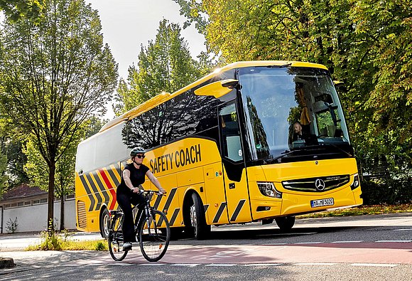 Neben den luxuriösen Reisebussen von Setra führt die Bussparte von Mercedes-Benz mit dem Tourismo ebenfalls unter dem Eigennamen eine hochwertige Buslinie im Angebot. Der Tourismo ergänzt die Überlandbusse Citaro Ü und Intouro und die Stadtbusse Citaro und CapaCity. Der Tourismo wurde im vergangenen Jahr umfassend aufgewertet und dabei auch mit den neusten Sicherheitssystemen aus dem Hause Mercedes ausgerüstet. Die ganze verfügbare Sicherheitsausrüstung wurde in einen speziellen Tourismo eingebaut, um die Technik näher an die Kunden und ins Bewusstsein der Bevölkerung zu bringen. Mercedes-Benz nennt ihn Safety Coach, Sicherheitsreisebus, und lackiert ihn gelb, mit auffälliger Kontrastbemalung.