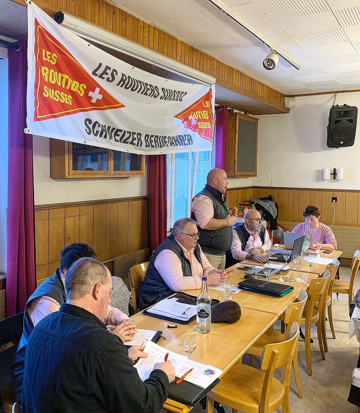 Am 2. März fand die Generalversammlung der Sektion Jura statt. Wie üblich in unserem Stammlokal, dem Café de la Poste in Glovelier, dort, wo sich auch unsere prächtige Vitrine befindet. Mit fünf Minuten Verspätung eröffnete der Präsident, Daniel Müller, die Sitzung. Mit den üblichen Grüssen an die Mitglieder, den Ehrenpräsidenten und dem Vertreter des Verwaltungsrates der Routiers Suisses, François Oberson. Die Rede des Präsidenten war kurz, da er aus gesundheitlichen Gründen seinen Rücktritt ankündigte. Der Vorstand nahm seine Demission zur Kenntnis und wünschte ihm alles Gute und vor allem, dass er gesund zu uns zurückkehrt. Ein warmer Applaus beendigte seine Rede, er, der während zehn Jahren seine Dienste im Vorstand zur Verfügung stellte, davon sieben Jahre als Präsident. Den Rest der Sitzung leitete unser Vizepräsident, Christian Lachat. Es mussten drei Positionen besetzt werden, nebst einem neuen Präsidenten die Bestätigung des Sekretärs sowie die Wahl eines Kommunikationsbeauftragten. Alles verlief reibungslos, Vizepräsident Christian Lachat wurde zum Präsidenten befördert, Marianne Jolidon als Sekretärin bestätigt und Nicolas Wyss trat als Kommunikationsmanager dem Vorstand bei. Verschiedene Punkte standen auf dem Programm, Berichte der Vorstandsmitglieder, also die des Kassiers über die Konten, die in einem sehr guten Zustand sind, sowie die angebotenen CZV-Kurse. Zur Abstimmung stand auch eine Statutenänderung im Zusammenhang mit dem Datenschutzrecht. Es wurde beschlossen, dass wir warten würden, bis die neue Formulierung von einem Anwalt kontrolliert und als korrekt befunden werde. Dann gab es Geburtstage und Jubiläen zu feiern. Ein Mitglied feierte seinen 50. Geburtstag und sechs weitere Mitglieder ihr 25-jähriges Mitgliedschaftsjubiläum bei den Routiers Suisses. Wir danken ihnen für ihr Engagement und ihren Beitrag. Es waren auch hochrangige Gäste anwesend, darunter die Abteilung für schwere Nutzfahrzeuge der Kantonspolizei Jura. Sie erklärten uns ihre Arbeit, ihre Philosophie und einige Gesetzesänderungen. Sie waren sehr zugänglich und hatten sogar ein Lächeln auf den Lippen. Vielen Dank an sie. Die Versammlung endete gegen 19.30 Uhr und die rund 50 Mitglieder begaben sich zum angebotenen Aperitif sowie zum anschliessenden Abendessen.