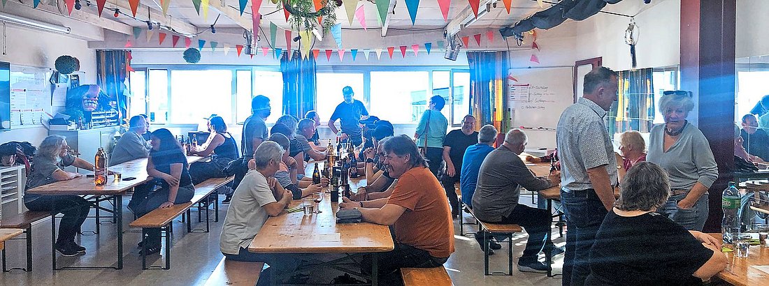 Knapp 60 Personen, Kir, 17 Liter Bolognese-Sauce, 10 Liter Carbonara-Sauce, 6 Liter Sauce à la Jacky, leckere Desserts, gute Stimmung, tolle Gespräche, das sind die Fakten des diesjährigen Spaghettiplauschs. Nun etwas im Detail. Am 13. April um 16.30 Uhr traf sich der Vorstand im «Drum In» in Kirchberg zur Vorbereitung des Spaghettiplauschs. Jedes kriegt kurz Anweisungen und schon geht es los. Die knapp 60 Personen müssen verpflegt und alles muss im Voraus vorbereitet werden. Bänke und Tische aufstellen, die Sauce aufwärmen, den Shop aufbauen usw. Bald schon sind die ersten Gäste da. Sie werden mit Kir zum Apéro verwöhnt und die Küchenmannschaft macht sich daran, Spaghetti zu kochen. Diese kommen natürlich frisch gekocht auf den Tisch. Jeder kann seine eigene Sauce wählen, ob Bolognese, Carbonara oder Sauce à la Jacky. Es ist natürlich möglich, das Buffet mehrmals zu besuchen und alles zu probieren. Später wurde das herrliche Dessertbuffet aufgebaut, und auch hier blieben keine Wünsche offen. Schokolade-Cake, Rhabarberkuchen, Cupcake usw. Wer da nicht etwas fand, dem kann man wirklich nicht helfen. Tee oder Kaffee, mit oder ohne gab es natürlich auch. Viele tolle Gespräche wurden geführt und um 0.20 Uhr schloss der Präsident den Raum, wieder sauber geputzt und aufgeräumt ab. Herzlichen Dank allen, die mitgeholfen haben, es war ein gelungener Abend.