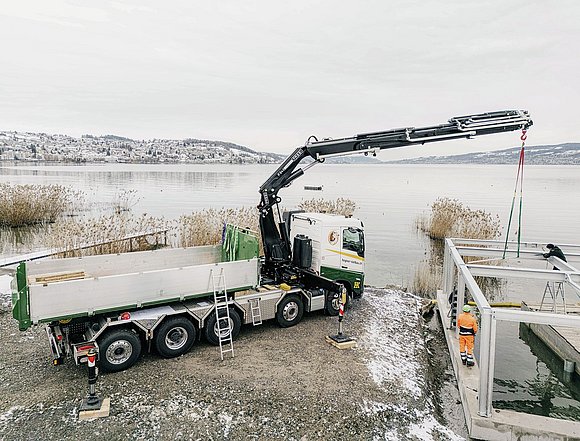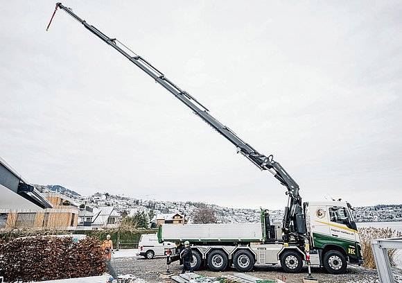 «Wir sind hauptsächlich ein Tiefbauunternehmen», sagt Marcel Hegner, Geschäftsführer der Konrad Hegner AG. «Mit dem Kranfahrzeug können wir zusätzlich auch Kranarbeiten, vor allem im Bereich Gartenbau, ausführen.» Da der Volvo FH500 auch über ein Hakengerät verfüge, sei man besonders flexibel. «So können wir das Fahrzeug auch im Tiefbau einsetzen», fügt Marcel Hegner an.