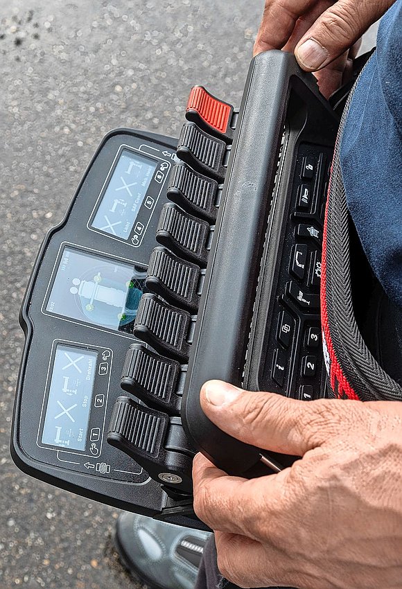 Stark, aber trotzdem kompakt und leicht; das sind Eigenschaften, die dem Anwender bezüglich Nutzlast und Flexibilität entgegenkommen. Mit einer Reichweite von bis zu 40 Metern lässt der Kran für den anspruchsvollen Gerüstbau keine Wünsche offen. Die neuste Steuerungselektronik namens Space Evo in Kombination mit dem fortschrittlichsten Abstützungssystem VSL+ wiederum sorgt für präzises Arbeiten und maximale Flexibilität. Die von Sadik Berisha bereits erwähnte Fernsteuerung CD 4 mit Farbdisplays und Personalisierungsmöglichkeiten erhöht den Bedienkomofort ebenfalls.