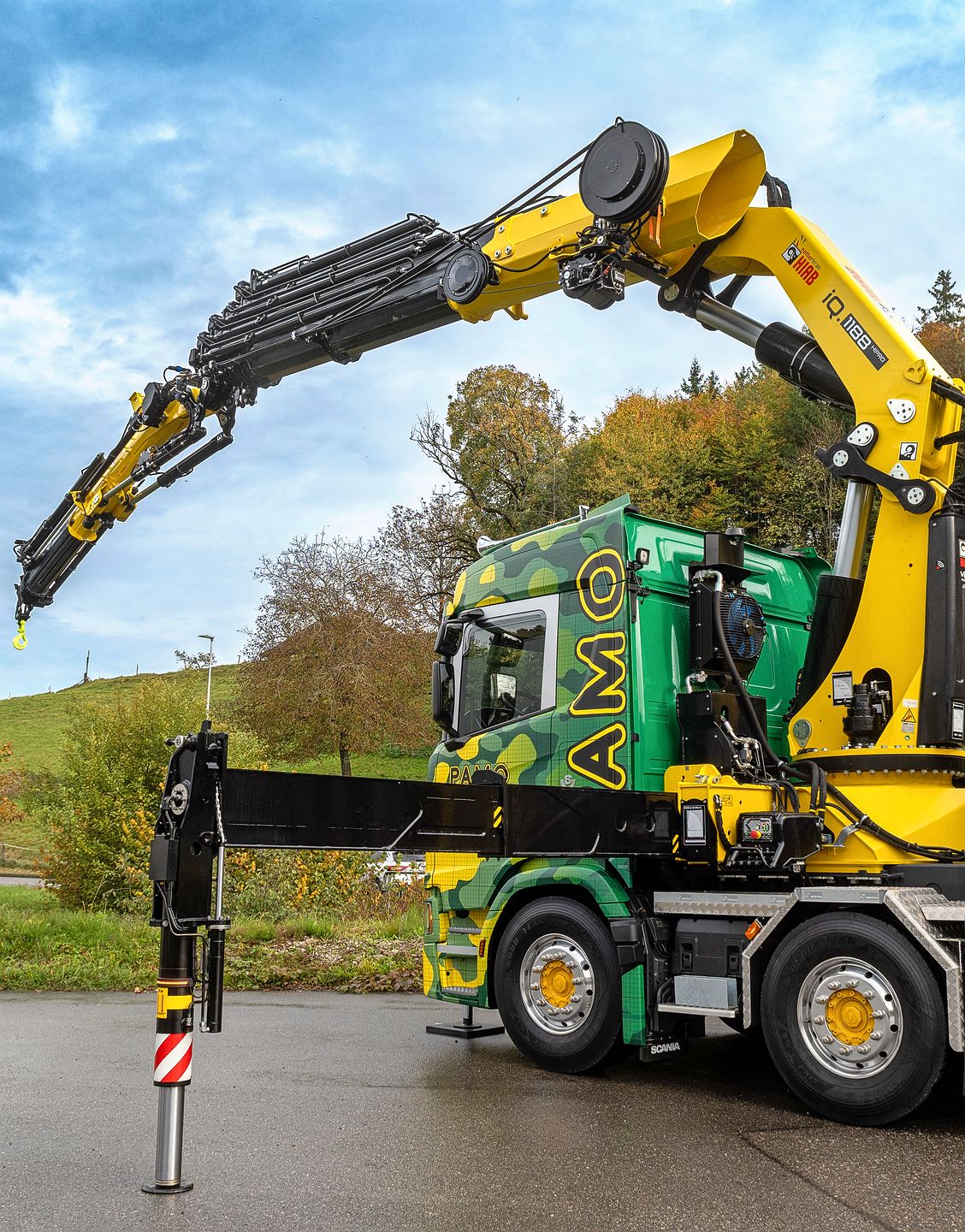 Dabei verlässt sich das Unternehmen auf eine gut ausgerüstete Fahrzeugflotte. So hat der fünfachsige Scania einen HIAB iQ.1188 HiPro E-9 und JIB 155 Q-6 erhalten – einen Kran der schweren Baureihe von HIAB. Er wurde als 120-tm-Ladekran eingeführt, bietet aber die Baugrösse und das Gewicht eines vergleichbaren 90-tm-Krans.