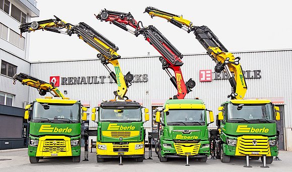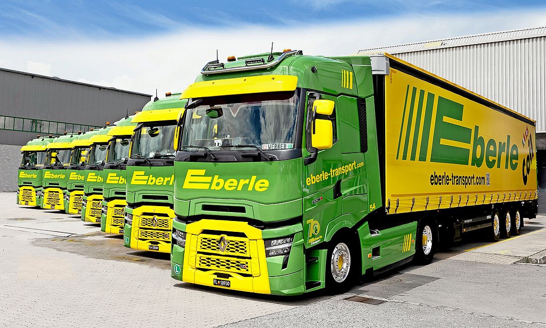 Heute zählt die Flotte der Eberle Transport AG rund 60 Lastwagen. Der allergrösste Teil ist von Renault Trucks. Dies hat gute Gründe: Einerseits ist man mit den Lastwagen zufrieden, andererseits befindet sich die nächste Renault Trucks Garage nicht nur um die Ecke, sondern auf demselben Areal wie die Eberle Transport AG in Buchs. Sie heisst J. Eberle AG, Geschäftsführer ist Joachim Eberle, ebenfalls ein Bruder von Barbara und Christoph Eberle. «Natürlich ist es praktisch, wenn man den Service gleich in der Nähe machen kann», sagt Christoph Eberle. Vor 24 Jahren sind das Transport-Unternehmen und der Garagenbetrieb von Bruder Joachim ins neue Gebäude an der Langäulistrasse in Buchs gezogen. Neben den nationalen und internationalen Transporten, dazu gehört auch intermodaler Verkehr, macht das Familienunternehmen übrigens auch regionale Transporte, Kranarbeiten und Schneeräumung. Für diesen Teil ist Reto Eberle von der Geschäftsführung verantwortlich – natürlich ebenfalls ein Bruder der bereits erwähnten Eberles. Und auch die dritte Generation ist bereits im Unternehmen vertreten, das zudem schon seit vielen Jahren als AdBlue-Anbieter bekannt ist.