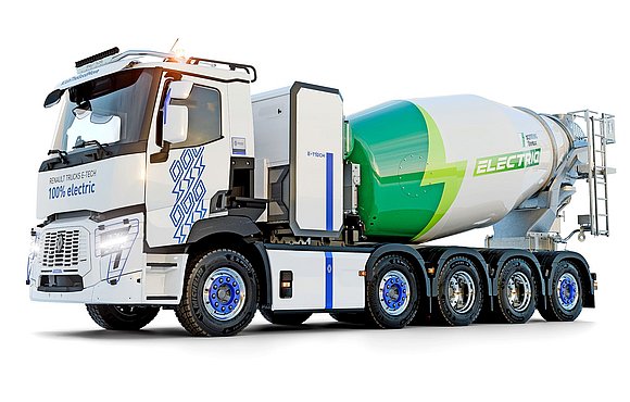 Noch nicht in allen Segmenten sind Elektroantriebe verbreitet. «Die Ausweitung der batterieelektrischen Technologie auf neue Segmente erfordert massgeschneiderte Lösungen», sagt Renault Trucks dazu. «Besonders im Betontransport, wo hohe Nutzlasten gefragt sind, beeinflusst das Gewicht der Batterie die Effizienz.» Deshalb hätten Renault Trucks und Schwing-Stetter den fünfachsigen E-Tech C, wahlweise mit einem vollelektrischen oder hydraulischen Mischer, entwickelt, der bis zu 10 m³ Beton transportieren kann. Dieser weist ein Gesamtzugsgewicht von 42 t auf. Renault Trucks hat mit dem E-Tech C 10×4 eine Lösung entwickelt, welche trotz der Herausforderungen durch das Gewicht der Batterie eine Reichweite von bis zu 220 km ohne Zwischenladung ermöglicht. Eine neu gestaltete Architektur mit vertikal positionierten Batterien hinter dem Fahrerhaus sorgt mit einem kurzen Radstand von nur 4250 mm für einen reduzierten Wenderadius.