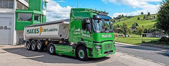 «Wir gehen davon aus, dass es in diese Richtung geht», sagt Kurt Marti, Geschäftsführer der MAKIES. Mit der Richtung meint er die Elektrifizierung der Nutzfahrzeugflotten. Vor Kurzem hat das Unternehmen aus Zell (LU) deshalb seinen ersten batterieelektrischen Lastwagen in Betrieb genommen. «So können wir Erfahrungen sammeln», sagt er und fügt an: «Die Zuverlässigkeit und die bisherigen Erfahrungen mit dem Lastwagen sind sehr gut.» Ausschlaggebend gewesen sei auch das Einsparpotenzial bei der LSVA. Zudem sei der Verkäufer von Renault Trucks ein «Zeller», man kenne sich deshalb gut. Auch die Zusammenarbeit mit dem Servicepartner, der J. Windlin AG in Kriens, sei positiv.