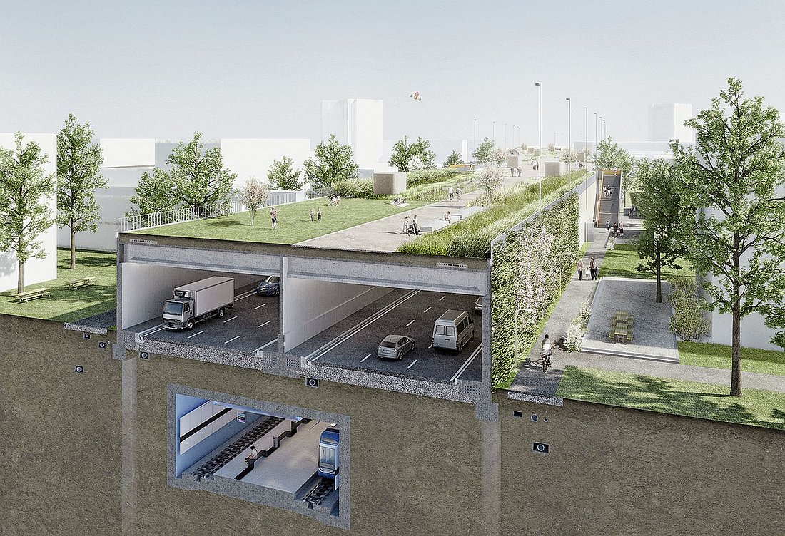 Der Tunnelabschnitt der Einhausung wird im Tagbau-Verfahren errichtet. Diese Erweiterung verlängert den bestehenden Schöneichtunnel in Richtung Stadtzentrum auf insgesamt 1,7 Kilometer. Zusätzlich werden Massnahmen ergriffen, wie das Schliessen der halboffenen, durchlässigen Tunneldecke beim Waldgarten und der Bau eines Lüftungsbauwerks mit Abluftkamin beim Portal Tiergarten.