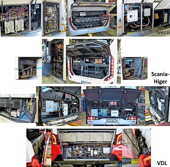 In der Konstruktion verfügen alle Busse vorne über eine Einzelradaufhängung, und von den Probanten ist der Antrieb von dreien mit Zentralmotor ausgestattet, einzig VDL setzt auf die Elektroachse. Grundsätzlich weisen alle Fahrzeuge einen hohen Standard auf, nur ganz vereinzelt trüben eine unsauber verlegte Leitung (Scheuergefahr) oder Mängel in der Verarbeitung das positive Gesamtbild. Vor allem beim chinesischen Neuling Higer Fencer wird der grösste Nachholbedarf bei der Fertigungsqualität geortet, wobei zu seiner Verteidigung gesagt werden muss, dass es sich noch um ein Vorserienfahrzeug handelt. Und dass der Higer das Scania-Emblem trägt, ist dem Grund geschuldet, dass Scania Deutschland den Vertrieb von Higer in Deutschland übernommen hat.