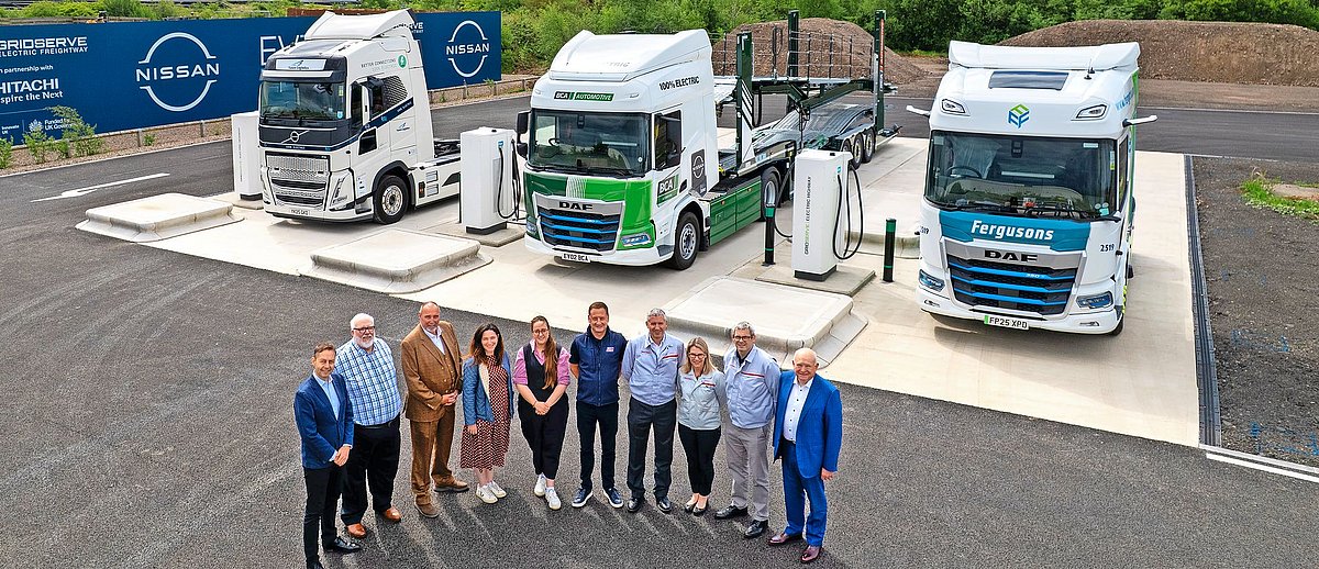 Der japanische Autohersteller betreibt schon lange ein eigenes Werk im nordenglischen Sunderland, wo aktuell die Modelle Juke, Qashqai und Leaf vom Band rollen. Als erster Produktionsstandort der Autoindustrie in Grossbritannien hat Nissan vor wenigen Wochen einen Ladepark in Betrieb genommen, welcher es seinen Transporteuren ermöglicht, mit Elektro-Lastwagen ihre Teile und Komponenten anzuliefern oder fertig produzierte Wagen auszuliefern. Die Anlage verfügt über sieben Ladesäulen, an welchen bis zu zehn Lastwagen gleichzeitig geladen werden können. Auf diese Weise können täglich bis zu 25 Lkw mit bis zu 360 kW Ladeleistung ihre Batterien aufladen.