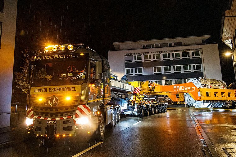 Mit dem Trafo in die Kaverne – Eine 109 Tonnen schwere Fracht reiste vom Auhafen ins Wallis